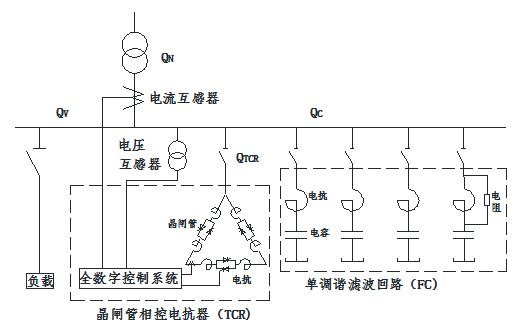 TCR型SVC的工作原理:當(dāng)負(fù)荷變化時(shí),電容與負(fù)載共同產(chǎn)生一個(gè)容性無(wú)功沖擊,這時(shí)用一個(gè)可調(diào)電抗(電感)來(lái)產(chǎn)生相對(duì)應(yīng)的感性無(wú)功,抵消容性無(wú)功沖擊,這樣在負(fù)荷波動(dòng)過(guò)程中,就可以保證系統(tǒng)無(wú)功接近于零。